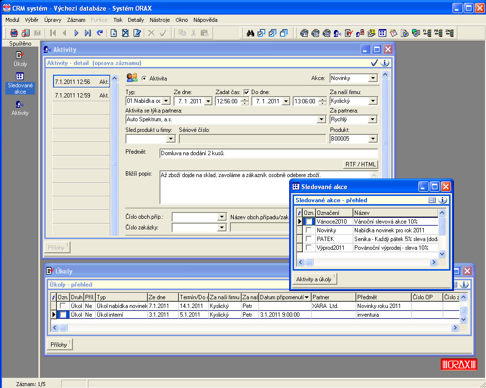 - žádná omezení v počtu záznamů v jakékoliv evidenci