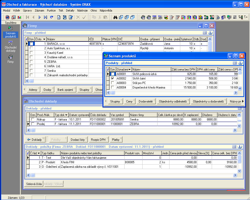 - snadné a standardní ovládání ve všech modulech programu (přehlednost)