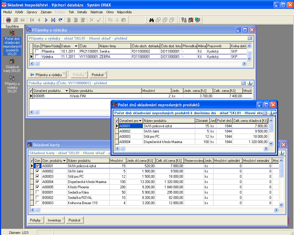 - uživatelsky definovatelný vzhled všech přehledů (umístění sloupců a šířka sloupců)